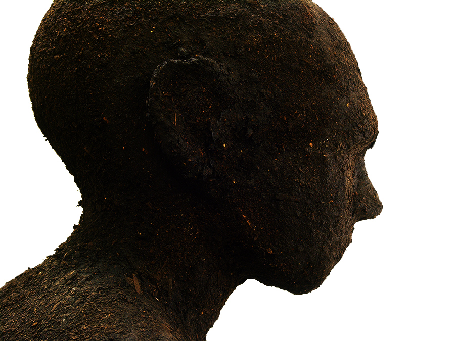 Sculptures réalisées en terre végétale et technique mixte, taille 1m45, 2014.